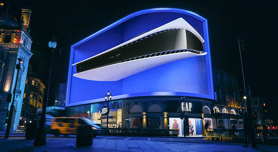 Ocean Outdoor, which operates and markets the Piccadilly Lights on behalf of Landsec, recently introduced forced perspective to the screen for the first time to mark the UK launch of Sony’s PlayStation 5.