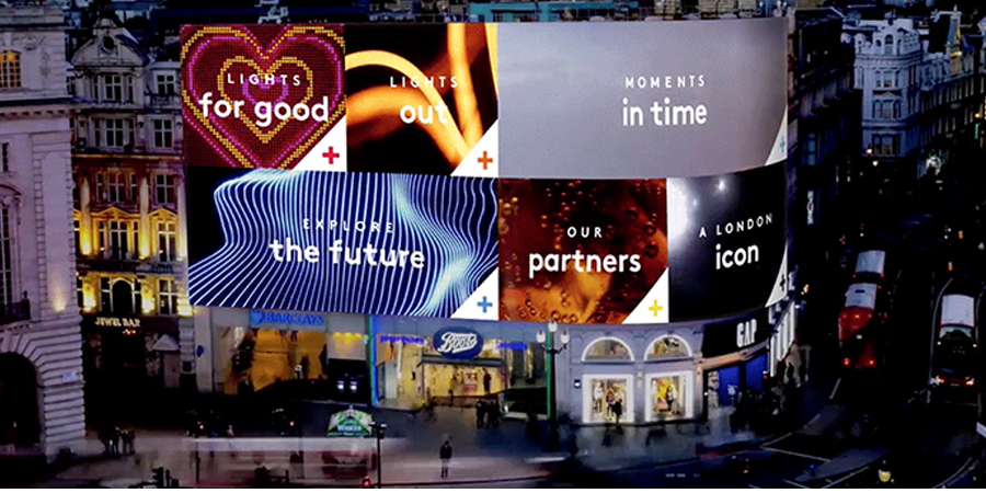 2,000 sq.ft Piccadilly Circus billboard programmed to flash ads as per audience profile