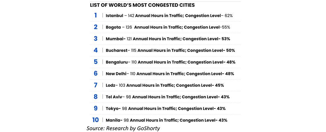 Fig 4: Most congested cities in the world by traffic density