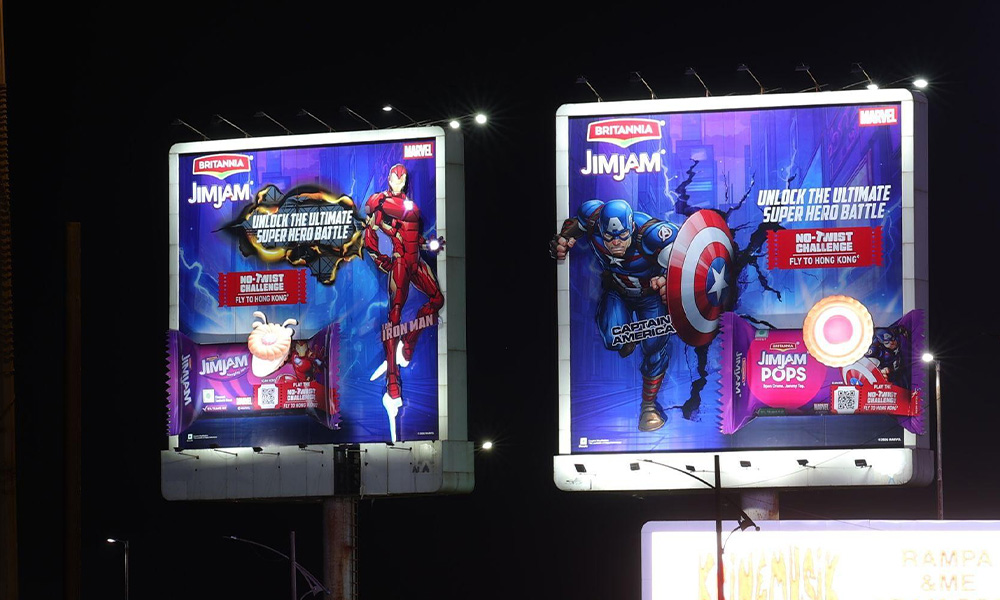 As part of the activation, high-impact OOH installations were set up at the Western Express Highway – Bandra Reclamation at ROB junction going towards Sealink. Conceptualised and executed by Coral Media, the installations featured Marvel Super Heroes alongside Britannia Jim Jam, adding a fun element to everyday commutes.