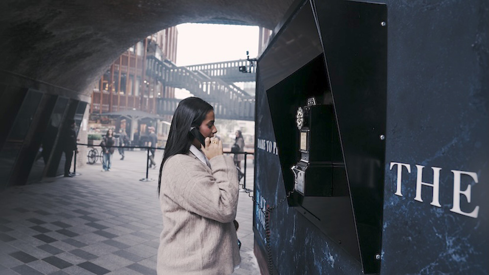 A lone Black Phone, fixed to a bespoke street-side installation, beckoned curious commuters to answer its call.