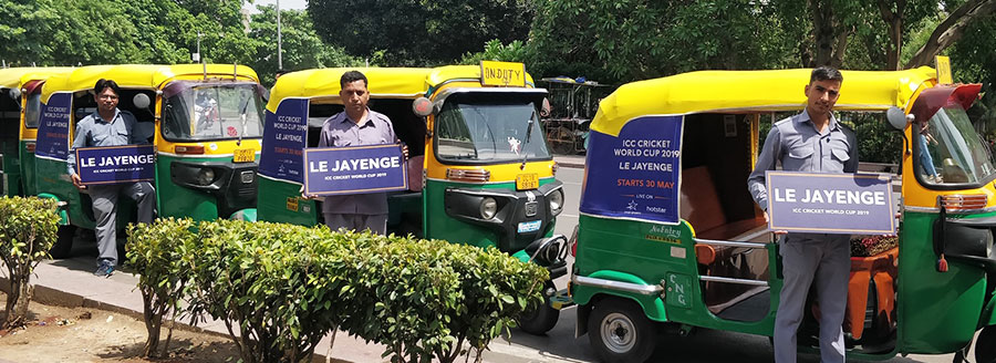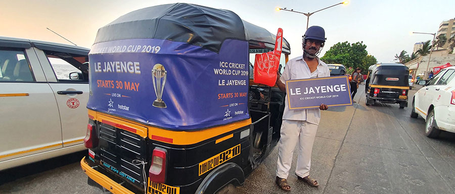 Even as the ICC Cricket World Cup 2019 (CWC) fever catches on, India’s leading sports broadcaster Star Sports engages with cricket fans in the new campaign #LEJAYENGE on transit media deploying auto, cabs and buses at prominent locations across Mumbai, Bengaluru, Delhi and Kolkata. The #CricketKaCrown, campaign kicks off its first phase on autos and cabs in metros with drivers holding placards stating ‘LE JAYENGE’ and inviting passengers to ride with them to their destination, a direct contrast to the regular practice of commuters having to wave for the autos to stop and negotiate the fare.