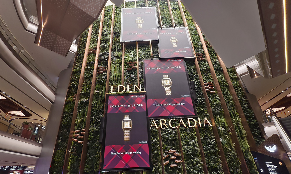 The campaign is executed through a strategic mix of mall media, including digital screens, building facades, and large-scale dropdowns. By securing these massive units in central atriums and mall entrances, the brand ensures dominant visibility at the point of purchase. This multi-city deployment allows Tommy Watches to capture maximum consumer attention during the peak December retail period.