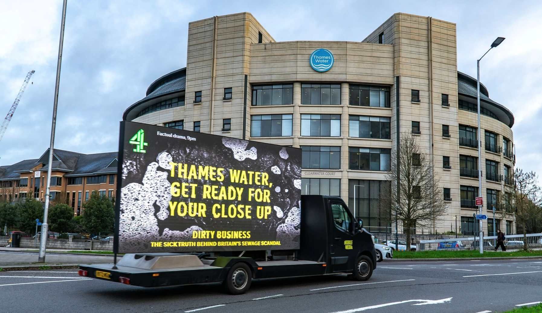 To drive deeper engagement, the fountain includes a plaque with a QR code that directs visitors to “The Sick Truth Behind Britain’s Sewage Scandal.” This digital extension features specially commissioned interviews and firsthand stories, turning a momentary visual shock into an educational experience. The on-ground activation is further amplified by a national mobile OOH campaign, featuring ad vans targeting water company headquarters with the pointed message: “Get Ready for Their Close Up.”