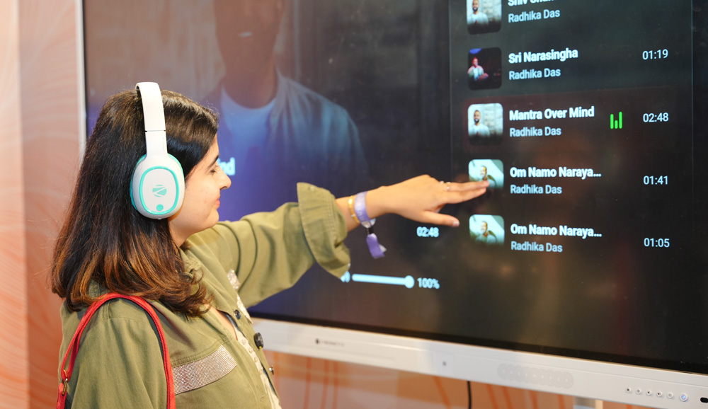 • Gesture-Powered Music Wall India’s first gesture-responsive devotional wall enabled audiences to activate visuals and sound elements through simple hand movements. This futuristic installation created deeply personal and meditative interactions, encouraging concertgoers to shape the devotional ambience in real time.